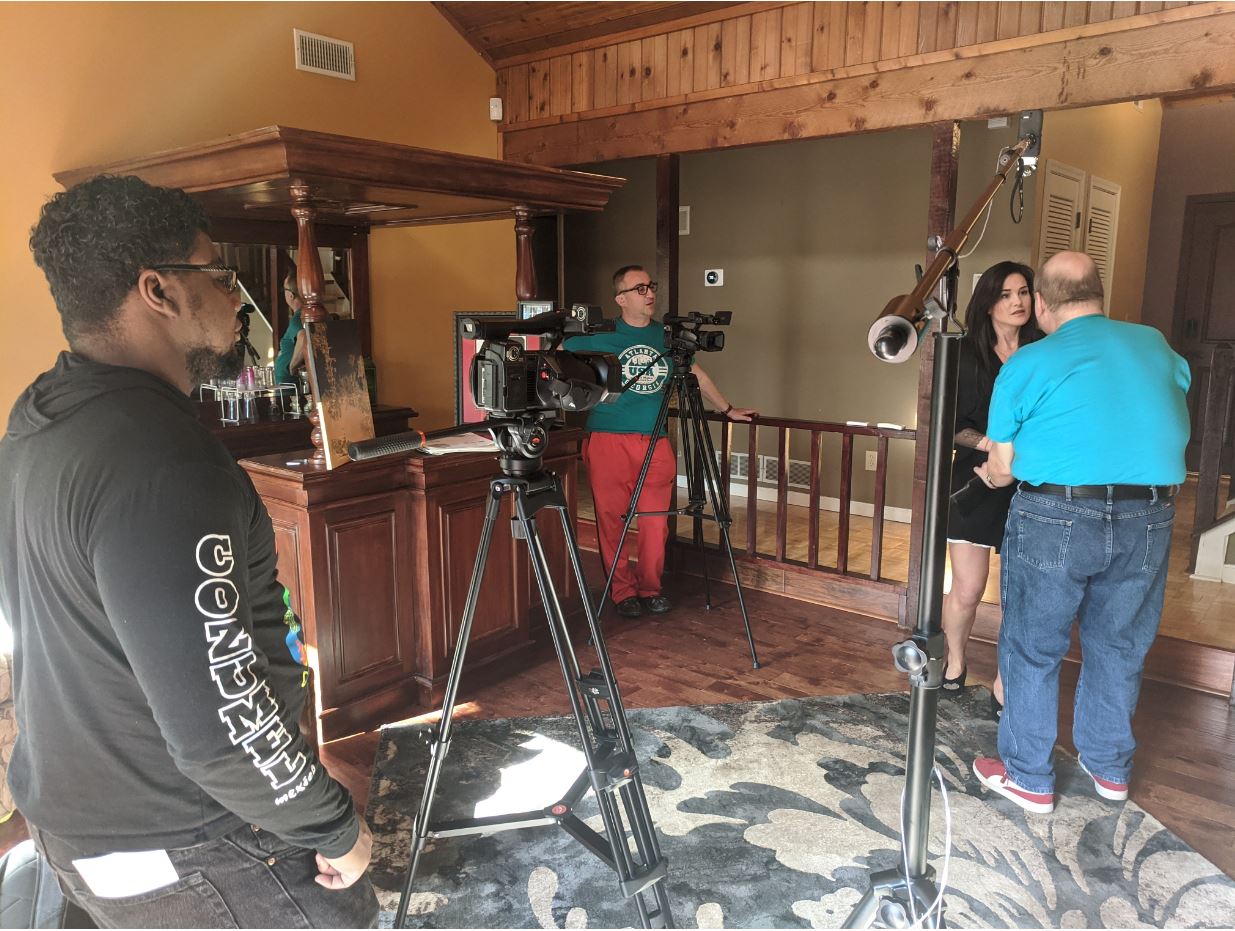 On the film set Peter, Ruby, Gordon, and Arsenio